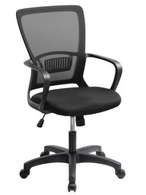 Irodai szék, karfás, fekete szövetborítás, feszített hálós háttámla, fekete lábkereszt, MAYAH "Vega", fekete