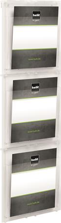 Prospektustartó, fali, A4, 3 rekeszes, HELIT "Placativ", átlátszó