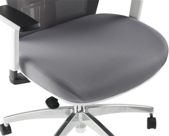 Irodai szék, karfás, hamuszürke szövet, feszített hálós háttámla, fehér váz, alumínium lábkereszt, MAYAH "Radar III"