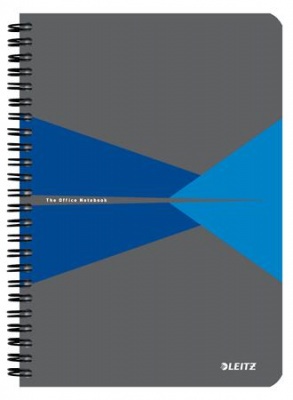 Spirálfüzet, A5, kockás, 90 lap, laminált karton borító, LEITZ "Office", szürke-kék