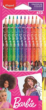 Színes ceruza készlet, háromszögletű, MAPED "Barbie", 12 különböző szín